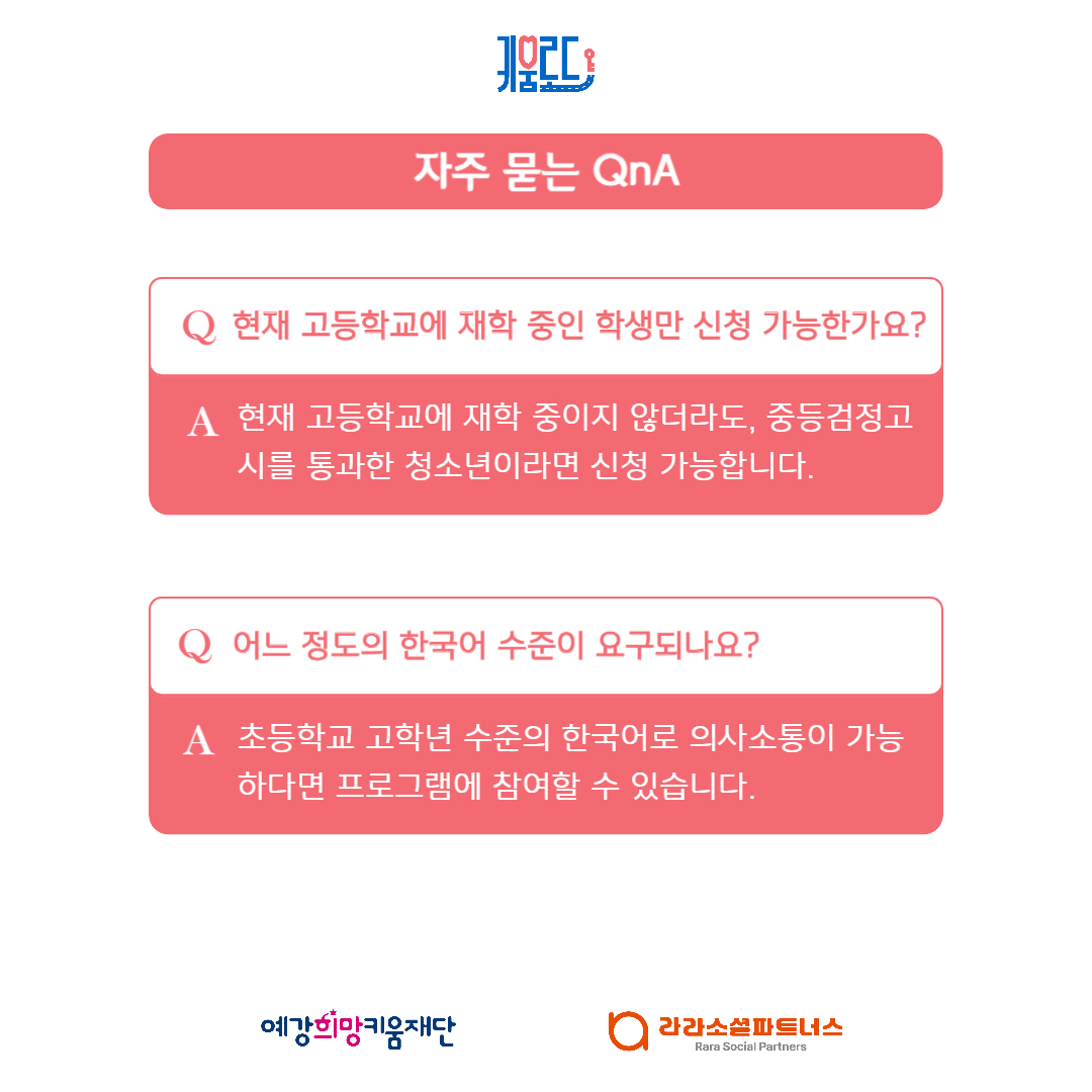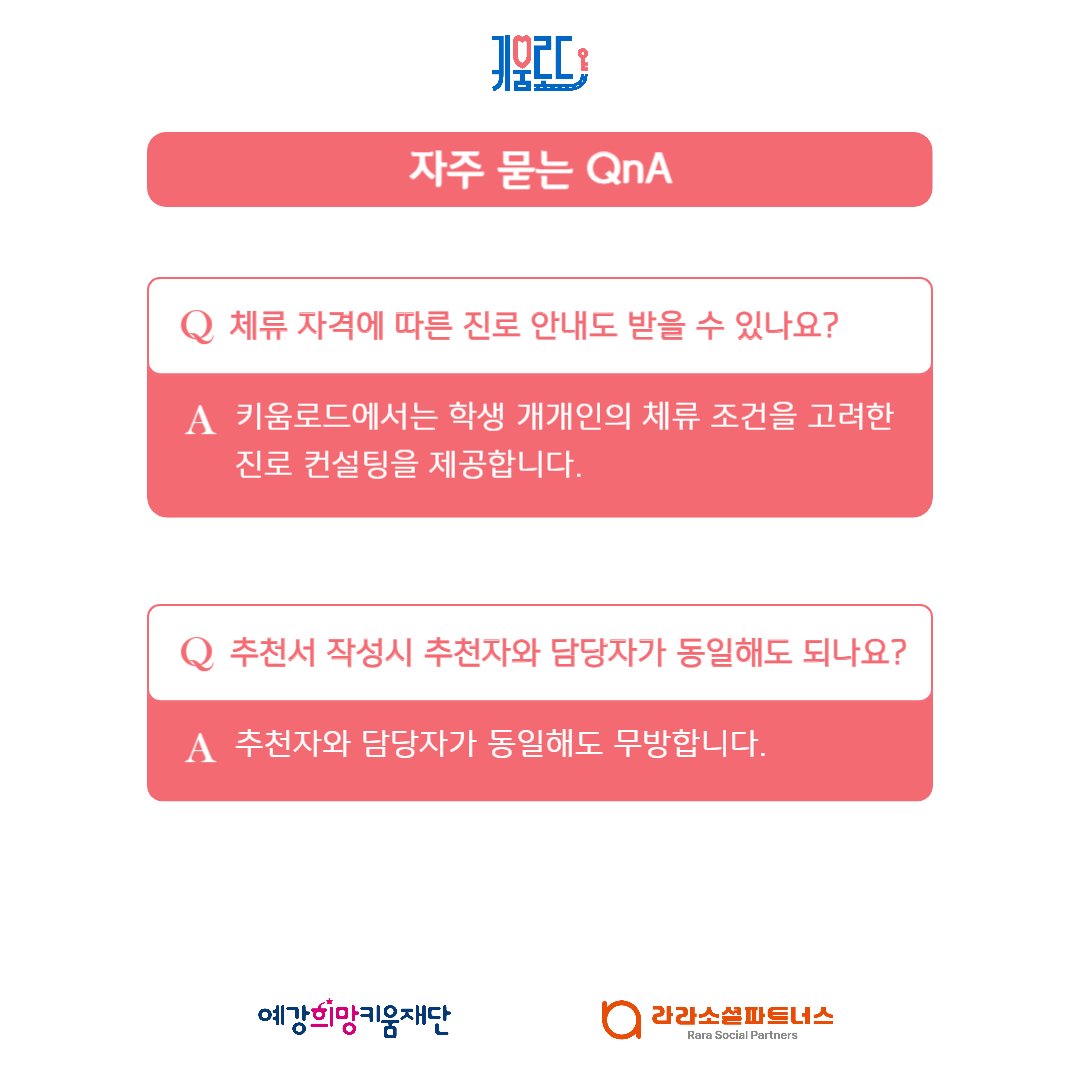키움로드에 자주 물어보는 질문 모음집을 준비해보았습니다! 신청하기 전 확인하면 좋을 정보들이 많이 있으니 한 번씩 확인보세요! 추가적으로 궁금한 것들이 있다면 언제든지 문의해주시길 바랍니다!