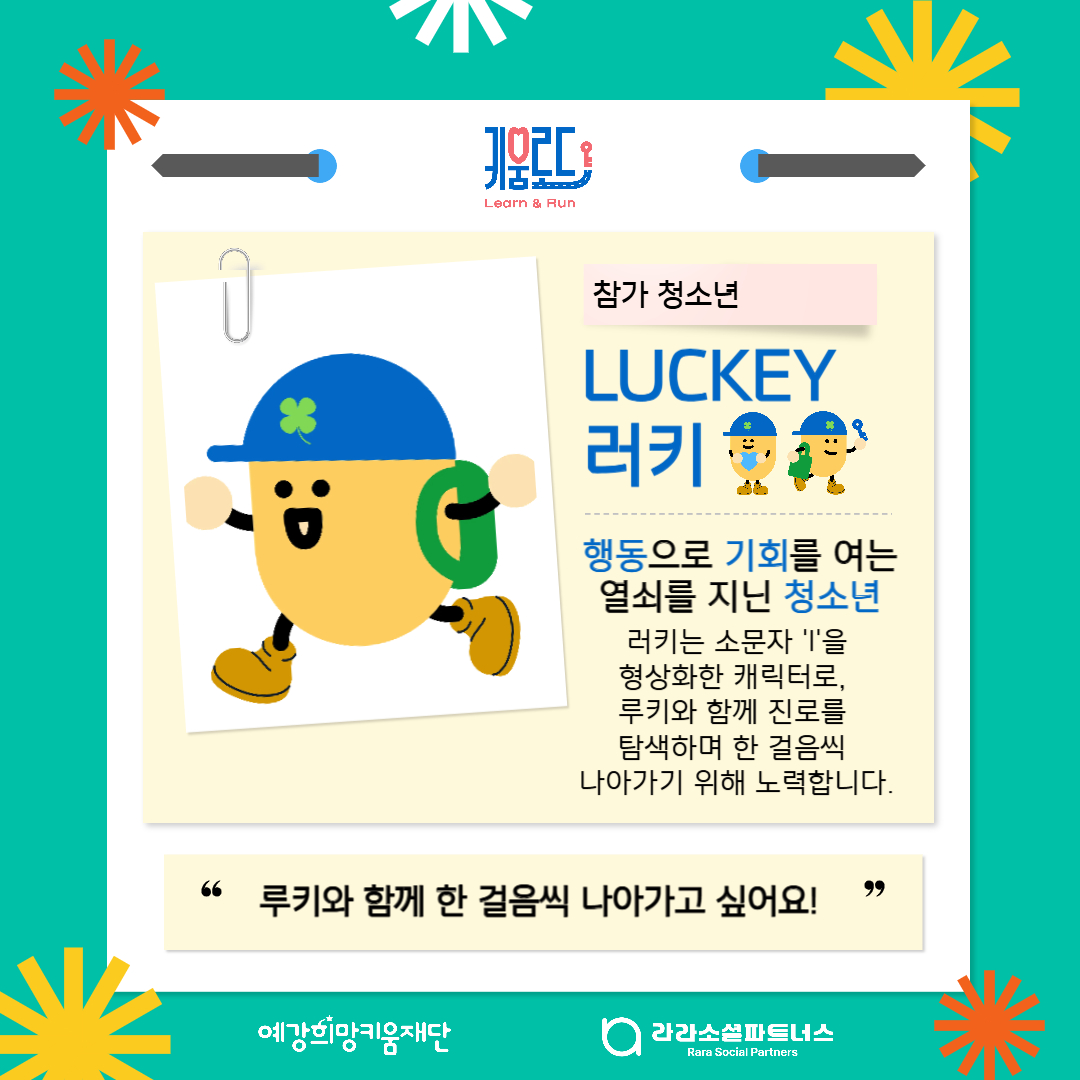귀여운 마스코트 루키, 러키와 함께 진로 탐험을 떠나고 싶다면 7월 13일 (일)까지 키움로드애 지원서를 꼭 제출해주세요!